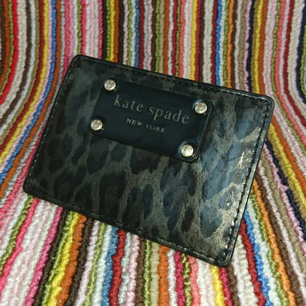 【美品中古】 kate spade NEW YORK ケイト スペード ニューヨーク カード ケース ブラック X グレー ヒョウ柄 313