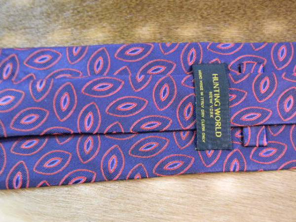 写真のものが全てのハンティング・ワールドシルク100%ネクタイです。使用感はほとんど無いので、傷やほつれ、擦れ、汚れの無い、とても綺麗なネクタイです。1回でも使用したネクタイは、クリーニング仕上げで清潔にし出品するようにしています。大剣先幅は約9.8センチあります。プレゼント用に最適ですよ♪画像を良くご覧の上、ノークレームノーリターンで宜しくお願いいたします。