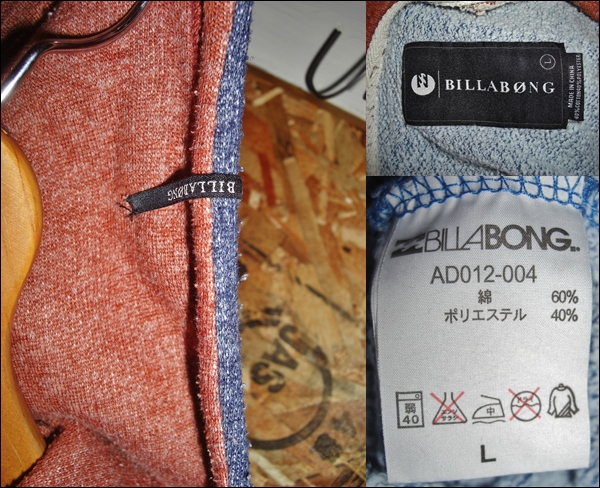 L ビラボン BILLABONG ヘンリーネック マルチカラー スウェットパーカー 青赤紺 K20C118