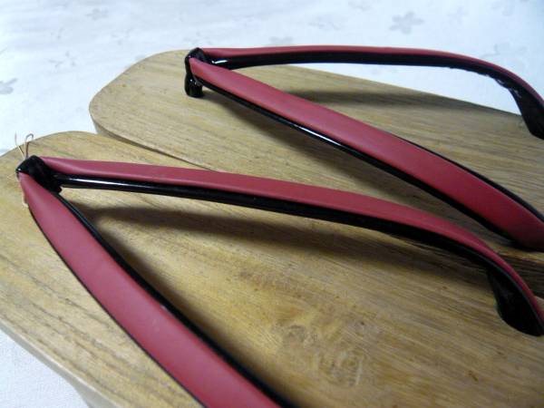 | ★ 商品名 未使用美品★下駄・桐の無垢木目★赤・黒色鼻緒★Mサイズ23cm★げた・ゲタ・着物・浴衣★1088 |