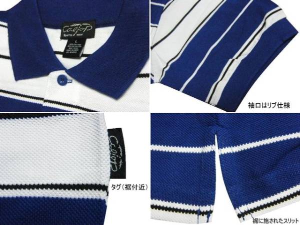 USA正規品 【M】 CALTOP キャルトップ 王道ストライプ 半袖 ポロシャツ LA直輸入 グレー ボーダー 西海岸 ローライダー コンプトン
