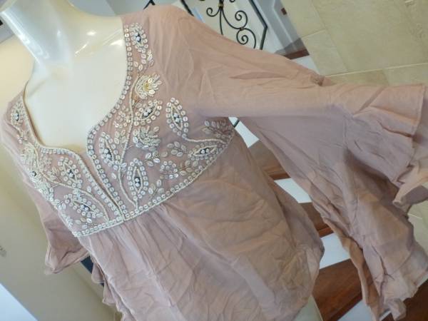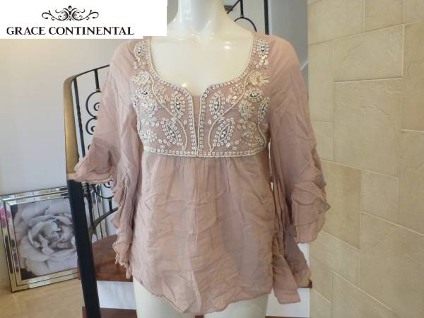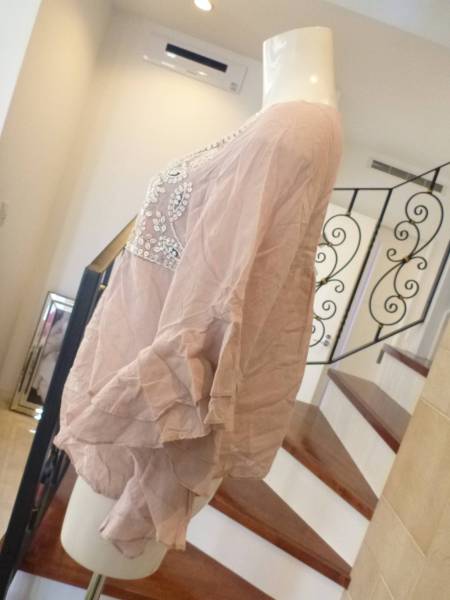 GRACE CONTINENTAL|グレースコンチネンタル ピンクベージュ ビジュー袖 フリルトップス 36