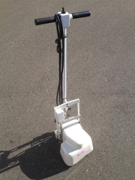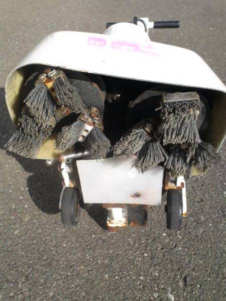 洗浄力、耐久力の高いブラシが付いています。ブラシの基盤が左右逆に回転するので安定して操作できます。傷汚れ錆ありますが、ブラシの回転は問題ありませんでした。ブラシが本体カバーに干渉するため、少しうるさいです。本体の大きさは8インチのフロアポリッシャーより一回り大きいぐらいです。宅急便送料込みです。