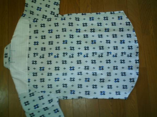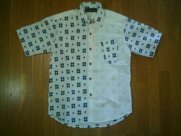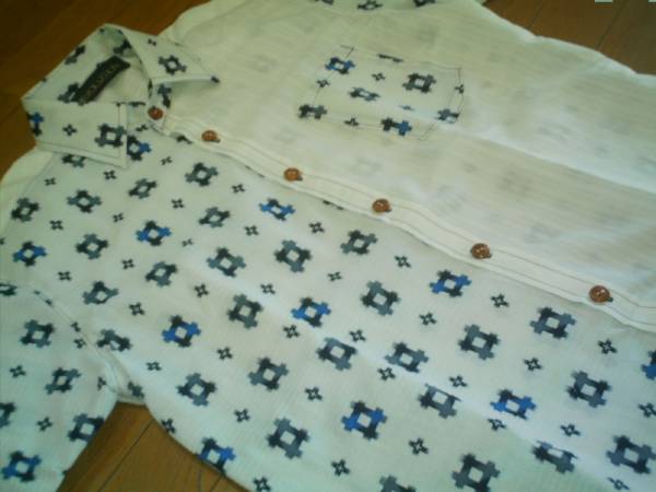 ☆手作り☆ ハーフかすり柄半袖シャツ 白 L 新品 送無料あり
