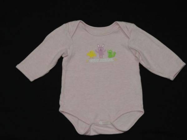☆うさぎ、とり、りすのピンクの長袖ボディウェア☆70センチ