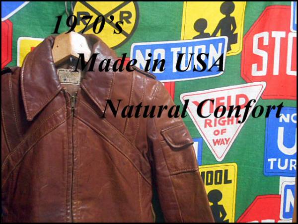 ★Natural Comfort★USA製アメリカ製ナチュラルコンフォートビンテージクラフトレザージャケット60s70sTALONナチュコンバッファローレザー