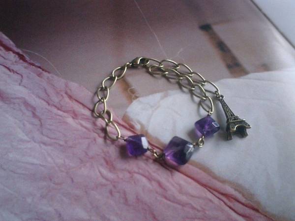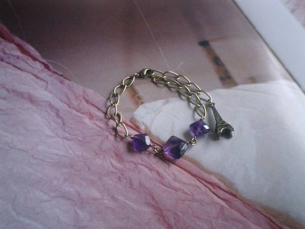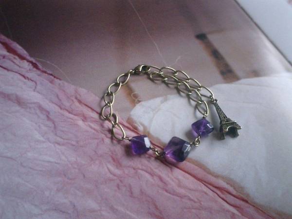 仏蘭西映画の余韻・・シリーズです♪神秘的なアメジスト・・深い紫色のアメジストのブレスレットです♪10ミリ、13ミリの大きさ違いのダイヤカットのアメジストが大人のロマンチックしています♪長さは全長23センチ位で調節自由です♪♪お揃いのネックレスやイヤリングも出品しています♪ハンドメイドをご理解いただいてノークレーム・ノーリターンでお願いします♪