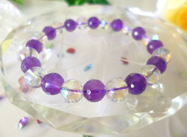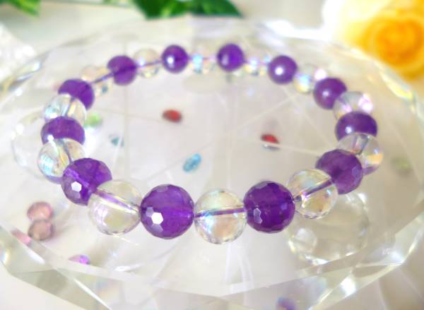 ★2月の誕生石★高次元チャクラ★愛の守護石★穏やかなる波動★高品質AAA★128面ミラーカット★アメジスト★レインボーオーラ♪