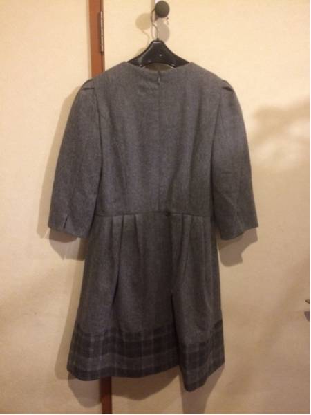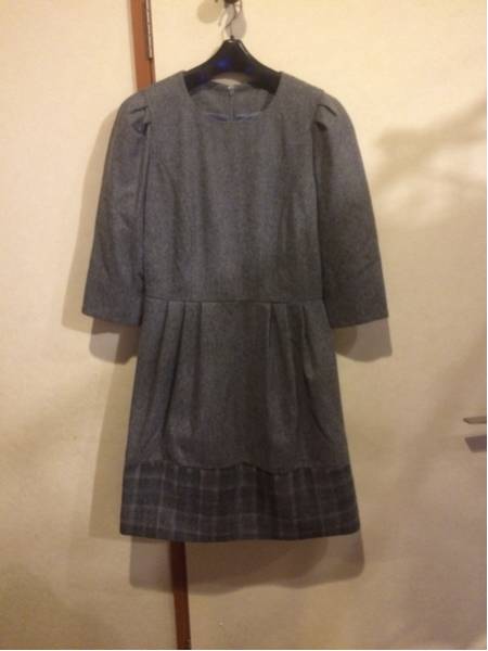 グレー地にニードルパンチでチェックの裾、模様の入ったとっても上品なワンピースです。