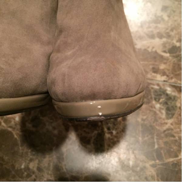 3枚目の写真にあるように左の靴先に小さなキズがありますがそんなには目立たないです。他は、全体的に美品です★