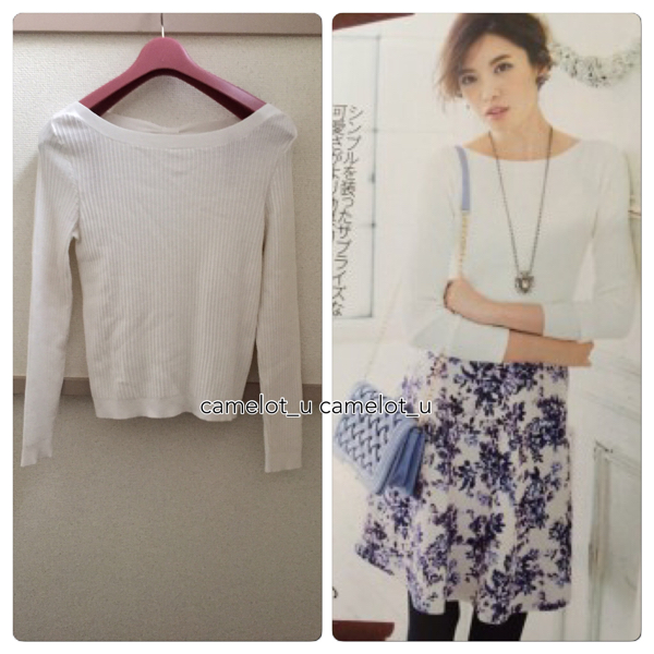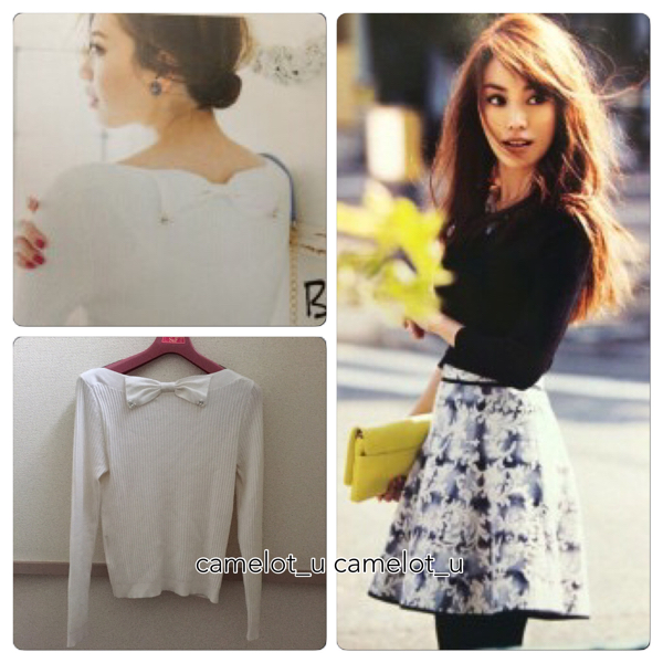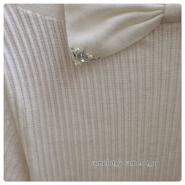 一見するとシンプルなニットは、バックネックのリボンで後ろ姿からフェミニンに格上げ。リボンには小粒のビーズをデコレートして、リッチな華やぎもプラス。幅広いボトムと好相性に着こなせて、オンオフデイリーに活躍します。縦線強調のリブでスマートな美スタイルに決まる愛されニットです。