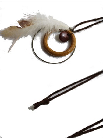 Unknown ネックレス アンティーク トップ 革紐 レザー 羽 ハンドメイド ビンテージ ヴィンテージ USA アクセサリー オールド AA62