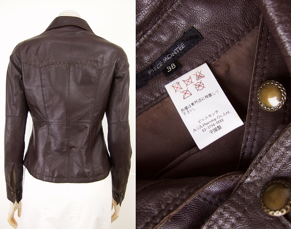 ![]() ![]() 落札後はオークション終了のお知らせメールに出品者からのメッセージが御座います。 自己紹介欄には急な休み等の記載をする場合が御座いますので一度お目通し頂きます様お願いいたします。ご一読の上オークション終了後2日以内の連絡、 落札後4日以内のご入金のお約束を守って頂ける方のご入札をお待ちしております。 小さい子供がおりますのでお急ぎのお取引を希望される方のご入札は遠慮下さいませ。 ---↓ここにブランド名記入---- ブランド名:PIECE MONTEE ピエスモンテ ---↓ここに特徴記入---- 特徴:大人の装いレザージャケットです。マルーン系(僅かに赤味を帯びたチョコレートブラウン系)の落ち着いた色!しっとり肌に馴染むしなやかなレザー!胸元&後ろの艶ステッチがアクセントの柔らかレザージャケットです。 ---↓ここにサイズ記入---- サイズ : 38 表示(トルソーは9号です) 実寸(平置き採寸) 肩幅39cm、身幅43cm、袖丈59cm、着丈56cm、ウエスト38cm、合わせ部5つボタン留 ---↓ここに素材記入---- 素材 : シープ 裏地 キュプラ100%