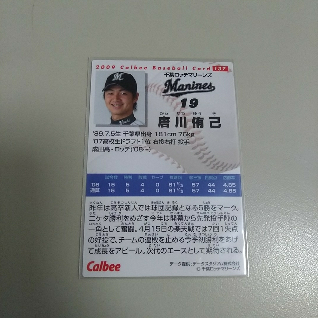 カルビー2009 137 唐川侑己(ロッテ)レギュラーカード