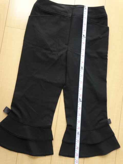 ⑬used★おしゃれかわいいレディースパンツ★ミドル丈・裾フリル&リボン付き・ブラック