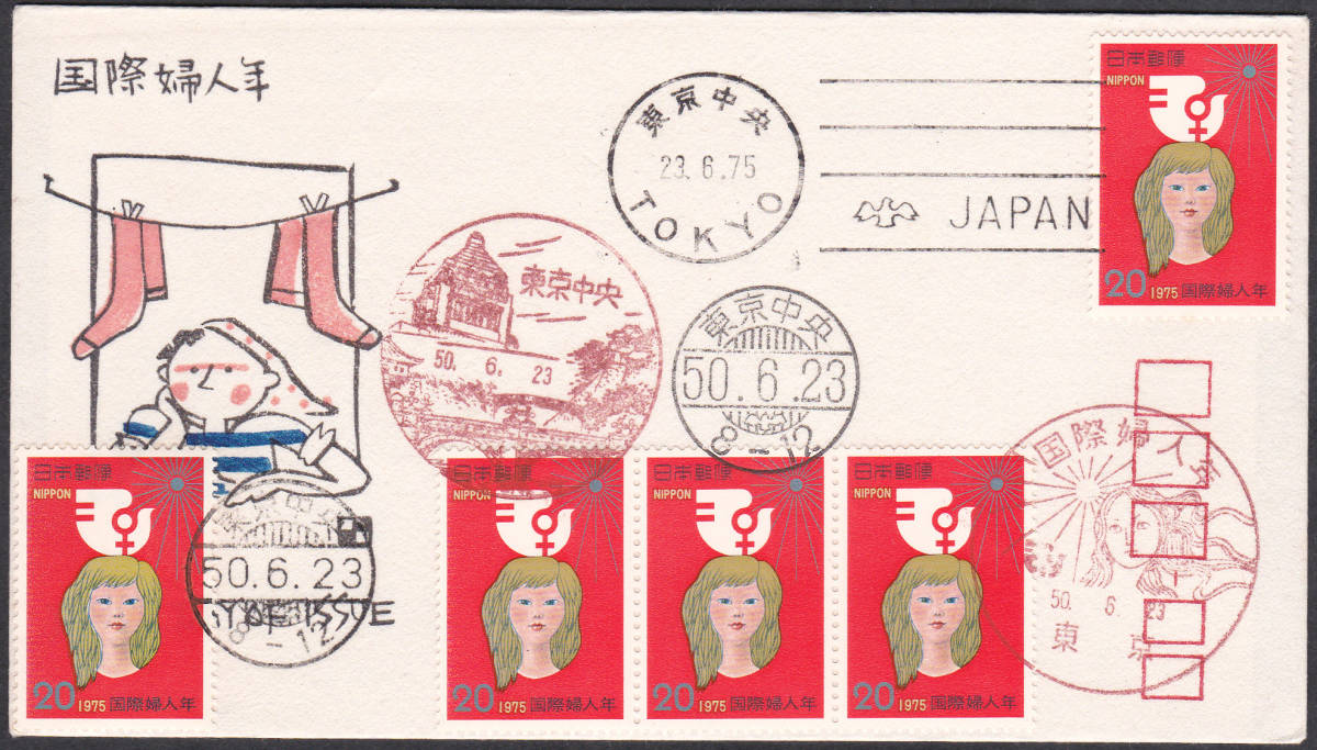 FDC 1975年 国際婦人年 5貼5消し  銀座わたなべ