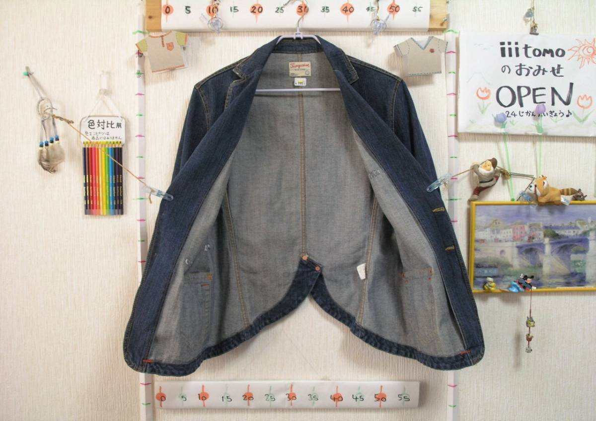 商品の補足説明(主観的な内容も含む) 背身頃の裾がアールになっていて、珍しい形のデニムジャケットです。 少し厚めのジーンズ位の生地で、ほどよい柔らかさです。 肌触りも良いと思います。 プラスチックではなく、スチール系のボタンです。 使用感は少なめですが、襟の端部や裾の端部はダメージ系になっています(追加写真を参照ください) 内側のタグにはLabrador Retriever Co.Ltdとあります。タグのかんじから、やや古いものかもしれません。 写真では黒に近い濃紺に写っているものと、やや青っぽいく写っているものがありますが、光源とカメラの設定によるもので、やや濃紺の写真のほうが実物に近いかもしれません。 |
