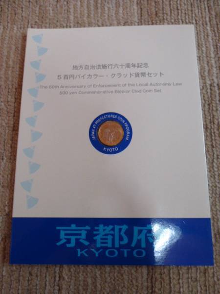 地方自治60周年記念 500円バイカラー貨幣 切手付  京都
