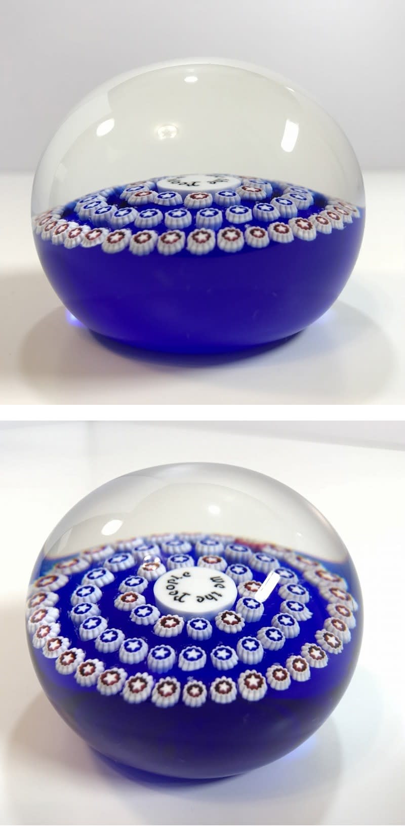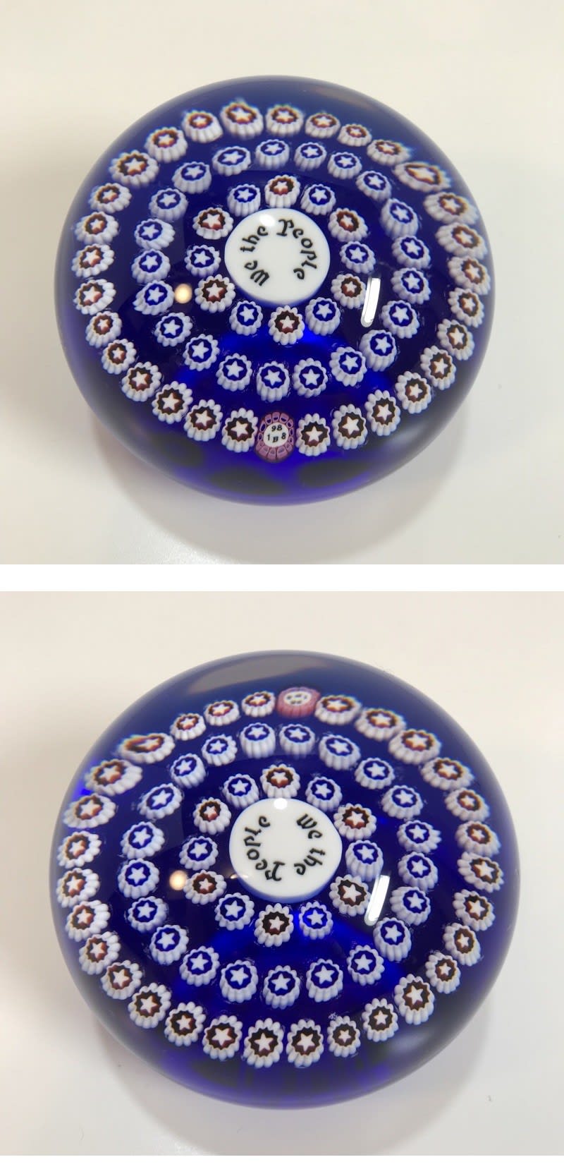 | 商品説明 | ★必ず出品者情報をご覧になってから入札をお願いします★ 【商品説明】 1987年に作られたアメリカ合衆国憲法制定200年を記念しての バカラ製のペーパーウェイトになります。 アメリカの憲法は世界最古の成文憲法です。 法典の前文が『we the people』で始まり、 国民の安全や防衛など、当該憲法を制定する目的が列挙されています。 ミルフィオリ(Millefiori)の1部に原法典制定の1987と、 バカラの頭文字であるBを記載しています。 Millefioriはイタリア語で『千の花』を意味するデザインや 図像を表すケーン(ガラスの細棒)の断面の名称です。 モザイク状に並べられたミルフィオリの薄片や短く切られたケーンは 華麗なデザインと文様を作り出します。 ここまで説明文を読んでおかしいと思いませんでしょうか。 こちらの個体(要 写真参照)は本来1987Bが記載していなければならないのですが 何かの手違いで1988Bが記載している超希少のエラーモデルとの事です。 後日知り合いのペーパーウェイトに詳しい方から教えてもらいました。 私も好きで幾つかバカラのwe the peopleを所有しておりますが 確かに1988Bは初めて見ました。 もし気になる方がおりましたら即売れてしまいますので この機会をお見逃しなく!!! 微細ななスレがあります。ガラスにクモりはありません。 全体的なコンディションはキレイで良好です!!! ペーパーウェイトが沢山あり整理のため出品しております!!! 【サイズ約】 高さ:5cm 幅:6.5cm 【発送に関して】 東京よりヤフネコパック60サイズを適用いたします。 出張と重ならない限り、入金確認後24時間以内に発送します。 【その他】 グッドコンディションのペーパーウェイトですが ビンテージになりますので、ノークレームノーリターンの 厳守が出来る方のみご入札をお願いします。    |