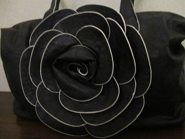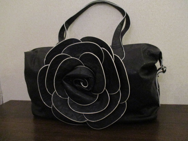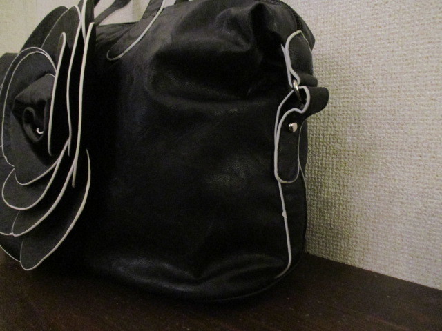 | 商品名 | 黒合皮バラのモチーフ付き ハンドバッグ(USED)32218 |