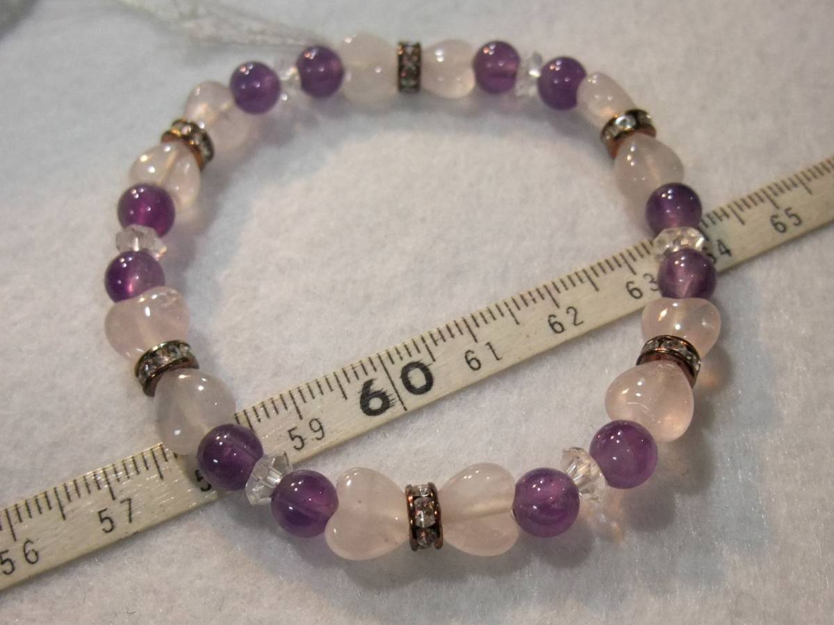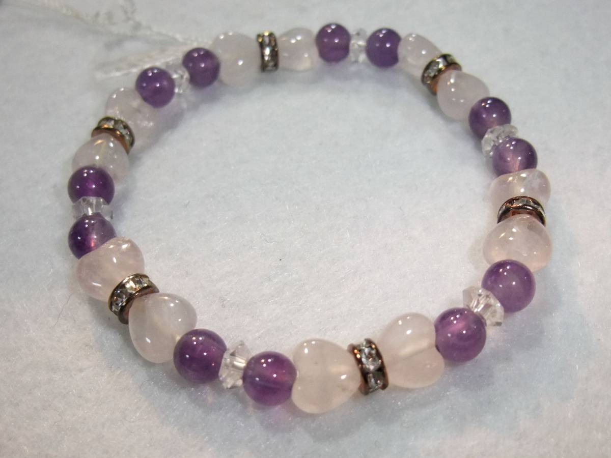 ☆彡ローズクオーツリボンとラベンダーアメジストと水晶ブレスレット☆彡