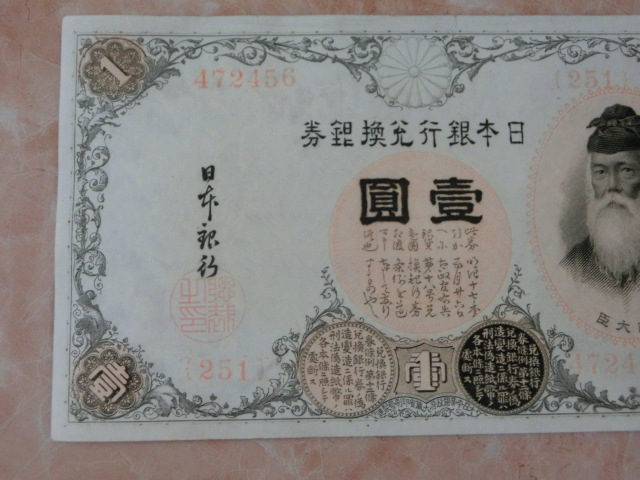 大正兌換銀行券1円 アラビア数字1円の200番台で極美品です。
