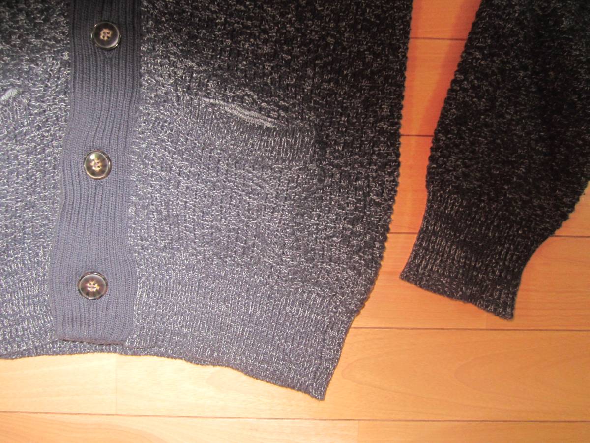 身頃や袖部は表面に凹凸があり、ミックス糸でざっくり編まれたカーディガンになってます。