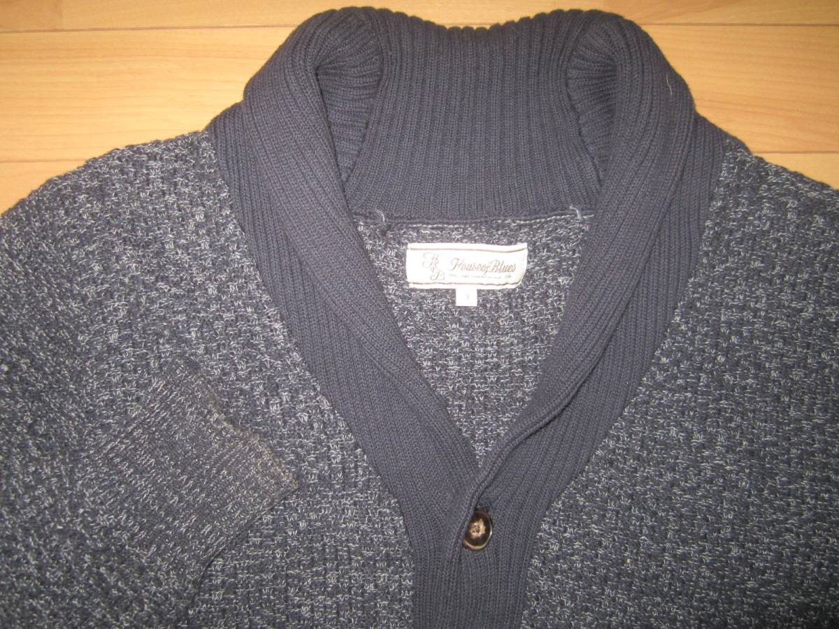 ★House of Blues no.321000 綿100% ショールカラーカーディガン★青灰size3★