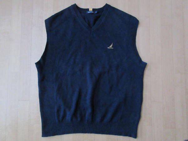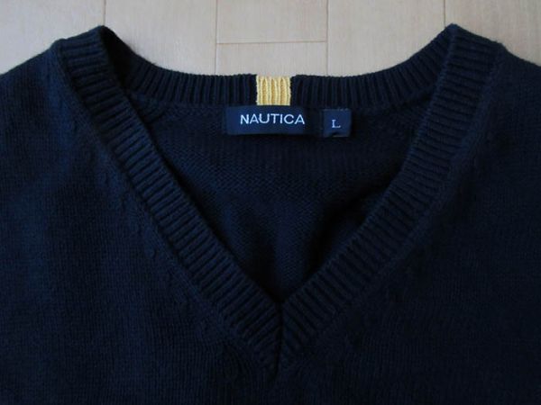 NAUTICA ワンポイント刺繍入り・Vネック・コットンニット・ベスト サイズ・L 正規品(株式会社 デサント)