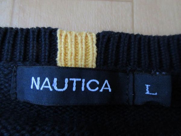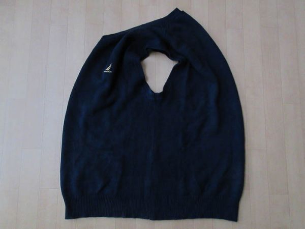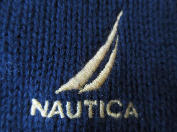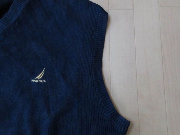 NAUTICA ワンポイント 刺繍 Vネック コットン ニット ベスト L ネイビー ノーティカ セーター セーリング マリン ビッグシルエット/n