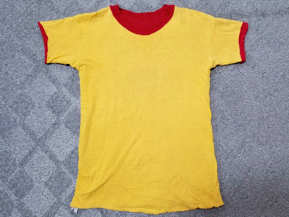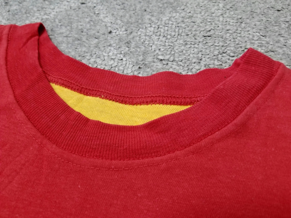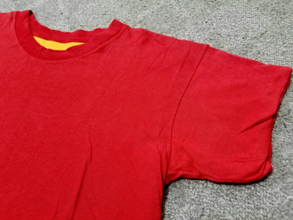良好 70s USA製 SOUTHERNATHLETIC 綿100% リバーシブルTシャツ M~L 無地 赤黄 // ビンテージ アメリカ製