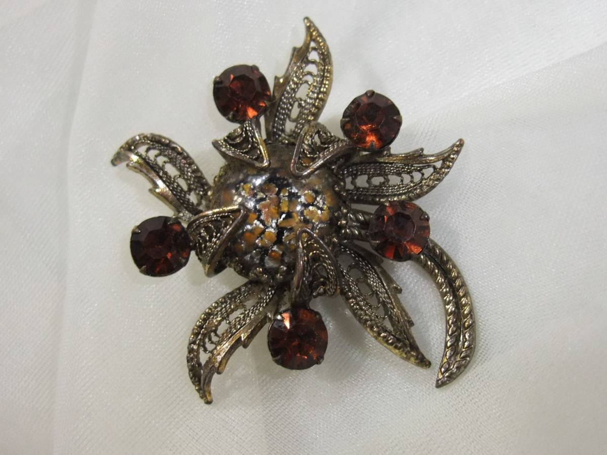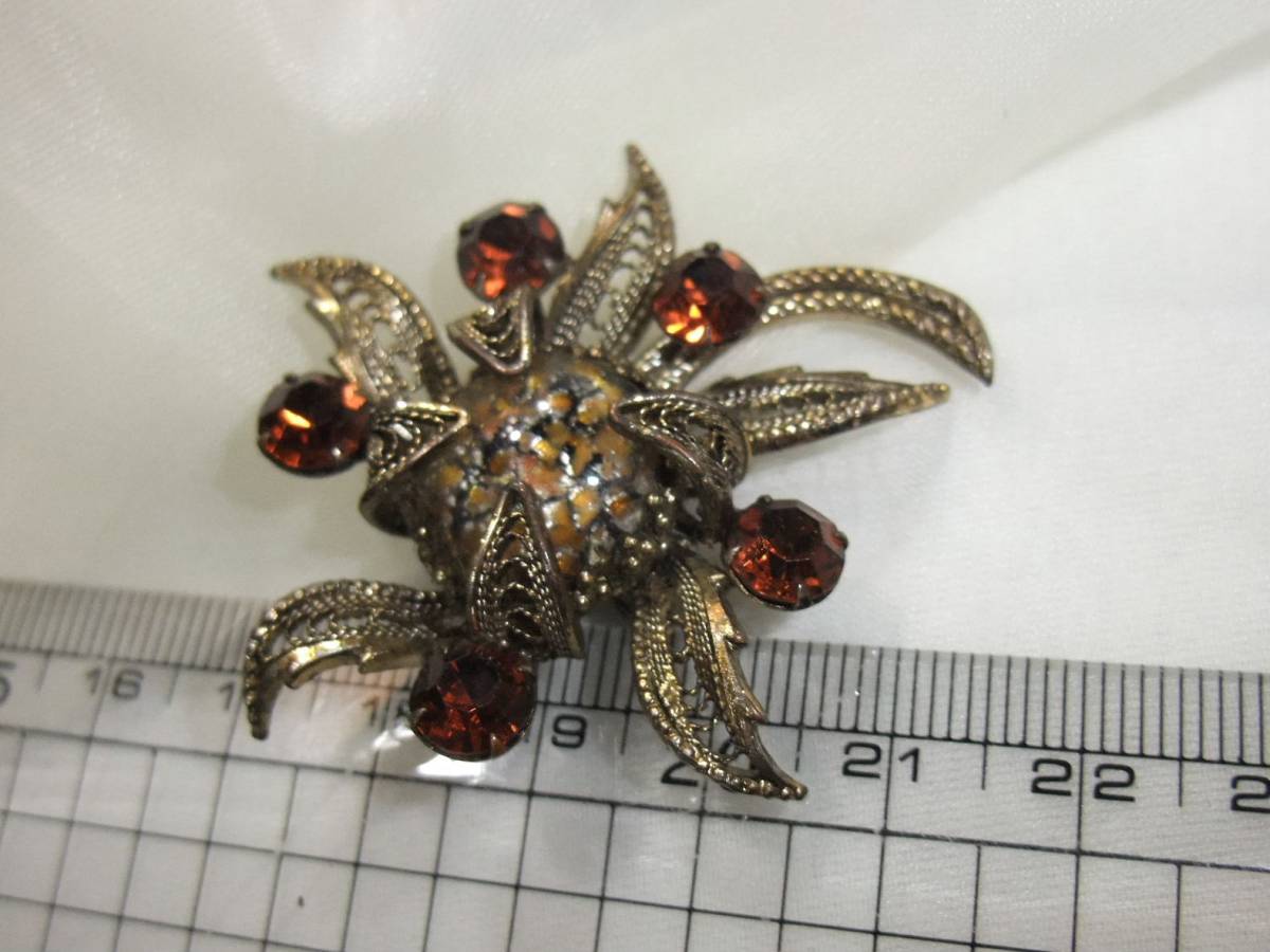ゴージャスな煌めき♪古いレトロな東欧製ラインストーン入りコスチュームジュエリーブローチアンティークデザインがゴージャスレア☆110⑧