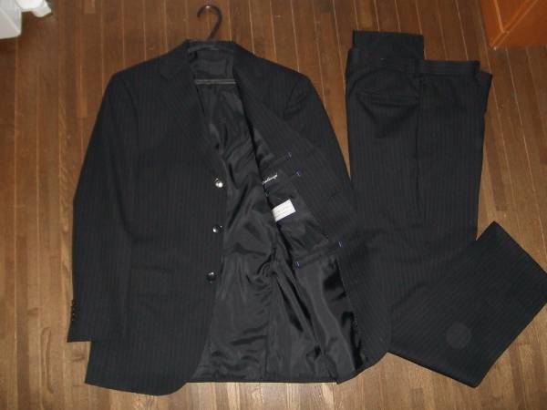 複数のスーツを買い込み入社式に着用しようと引っ張りだしましたがAB体型に激変のため泣く泣くの出品です。