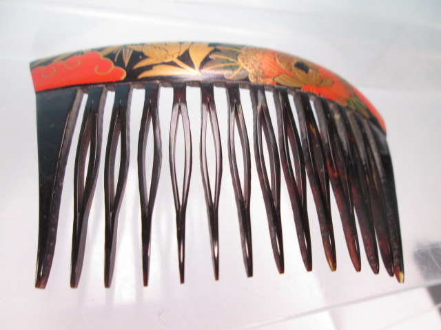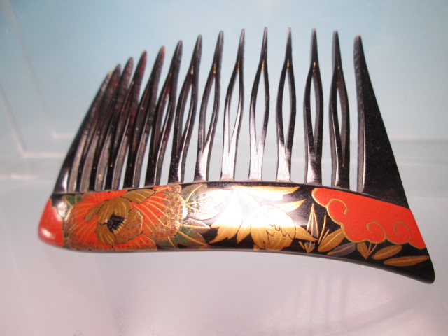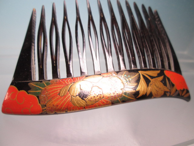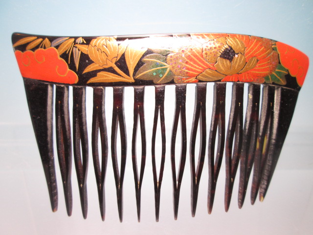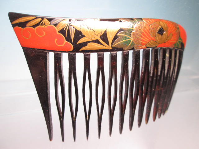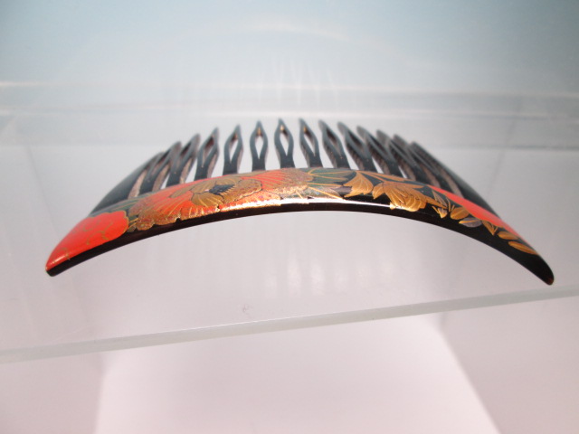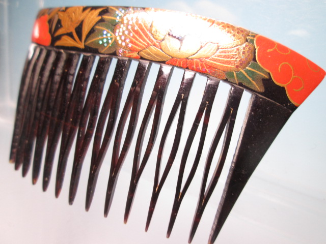 ☆久光作 本鼈甲 牡丹の花 金蒔絵の華やかな櫛 木箱付