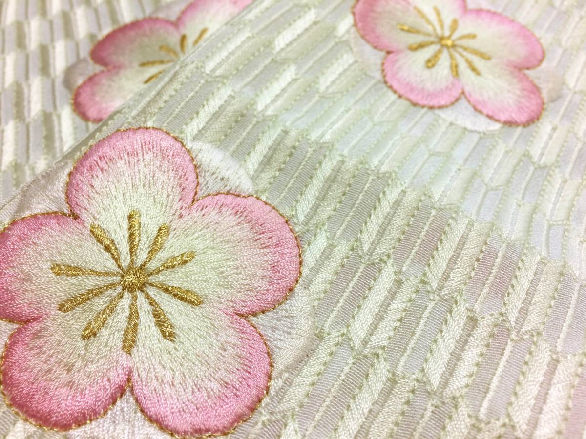 衿を広めに着付けて、ボリュームのある刺しゅうを目立たせたらステキです!