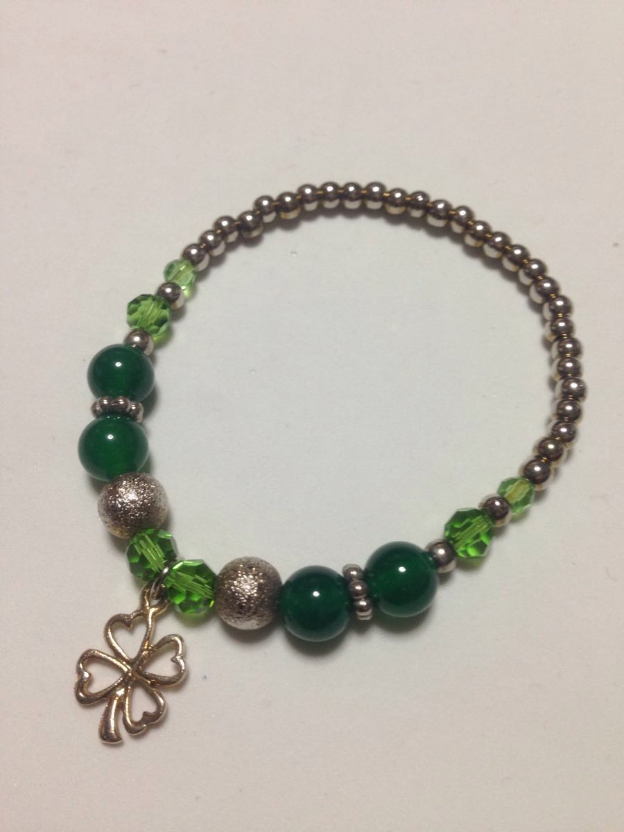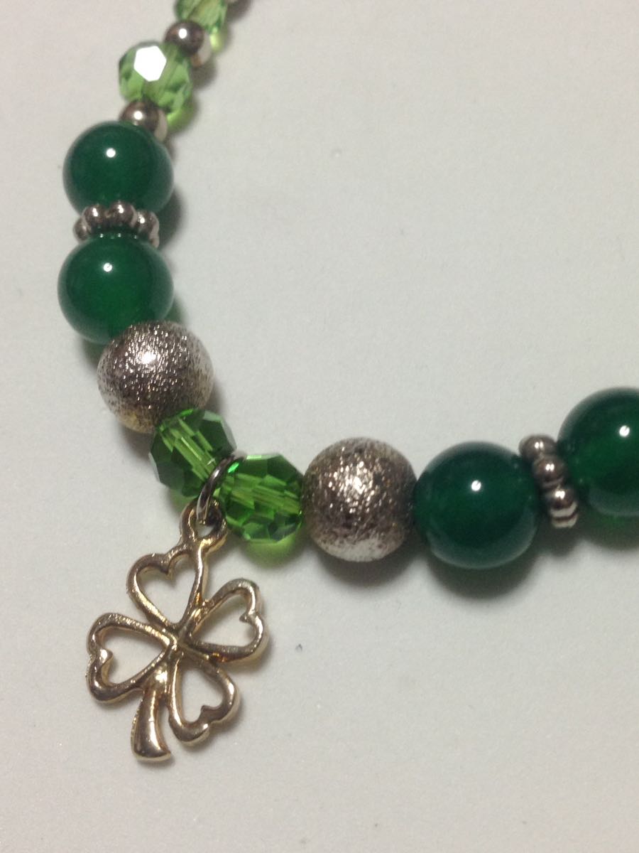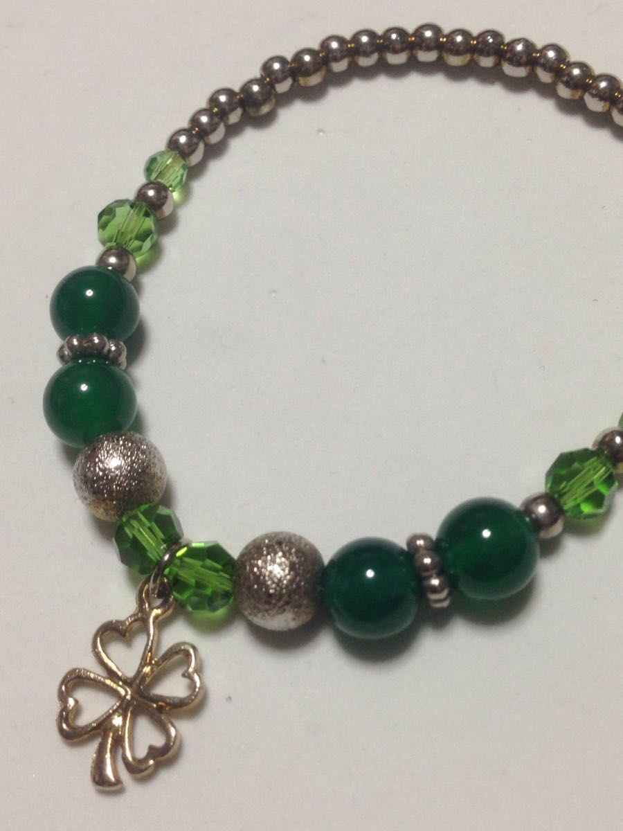 緑瑪瑙の四つ葉のデザインブレスレッドです、緑瑪瑙が美しく、希少なブレスレッドです