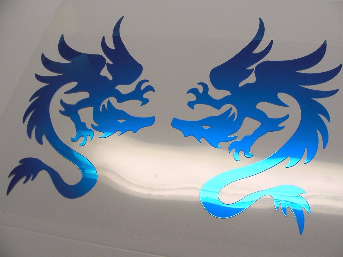 透明のフィルムに印刷されているタイプのステッカーではありません。絵柄にそってシートを切り抜いたカッティングステッカーとなります。透明の転写シートがステッカーの上に貼られていますので、転写シートごと台紙から剥がし、貼り付けたあと転写シートを剥がすと塩ビ素材の耐久性の高いステッカー本体のみが残ります。ウェイクボードはもちろん、サーフボード、スノーボード、水上バイクなどにも使用実績があります。少し技術が必要ですが、ゆるやかな曲面であれば貼る事が出来ます。(伸ばしすぎると白く変色して鏡面感が無くなるのでご注意ください)