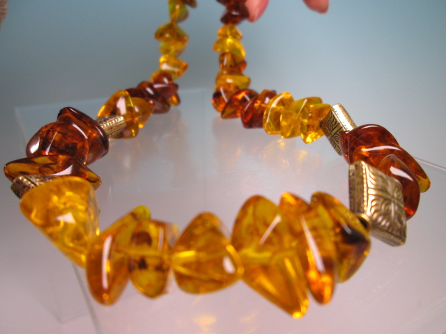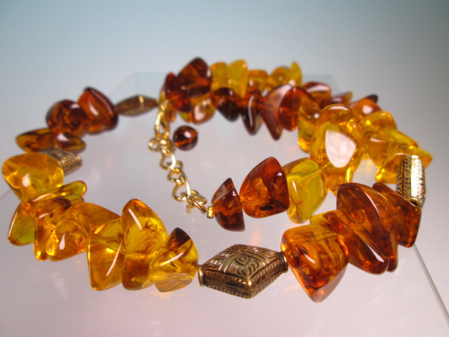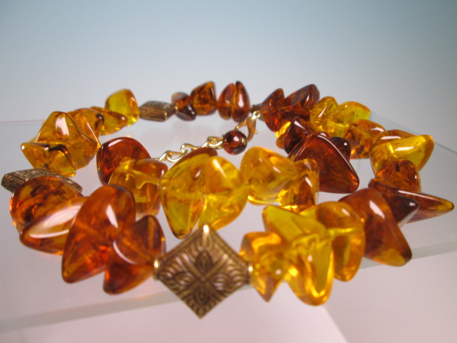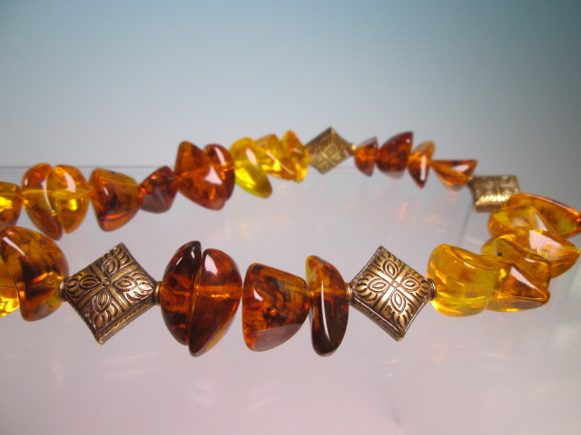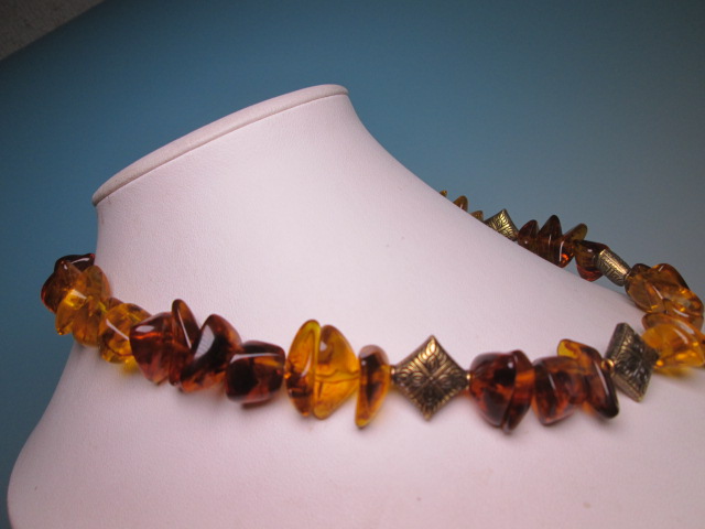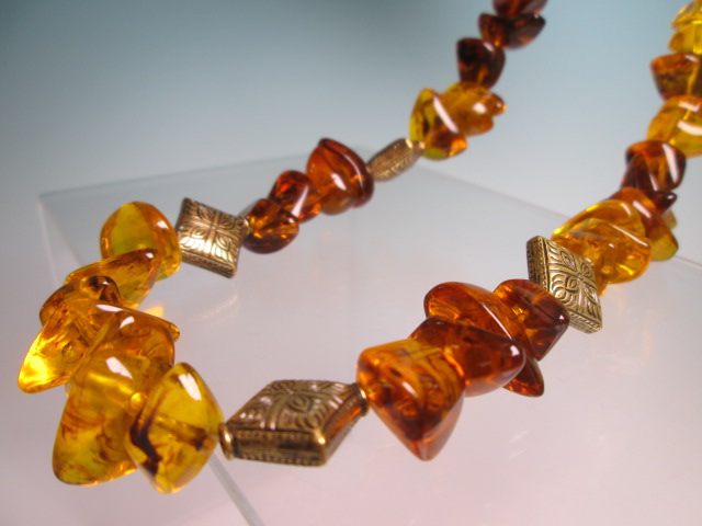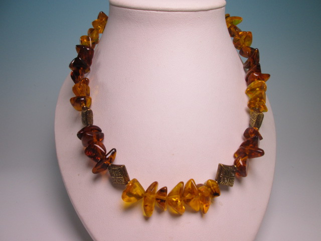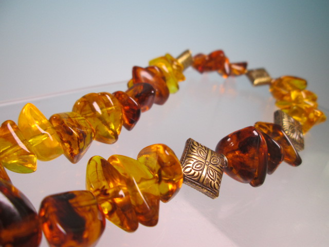 ☆天然琥珀 変形粒のツーカラーデザインネックレス 38g