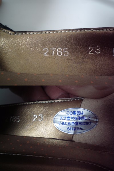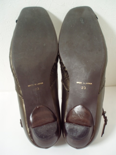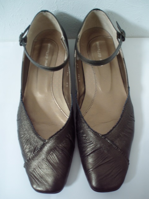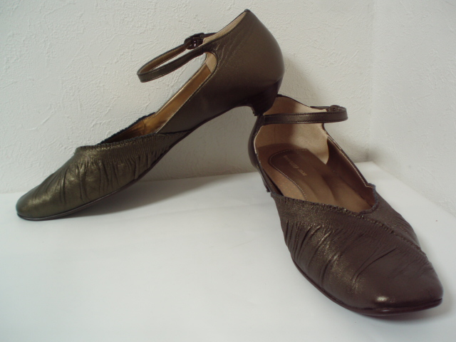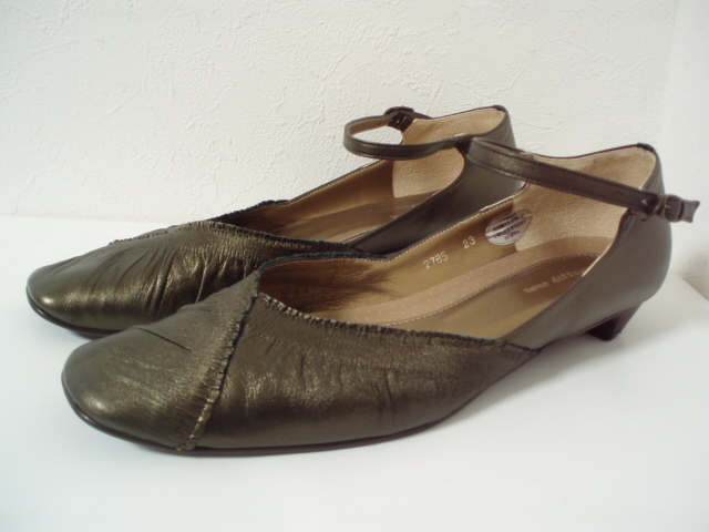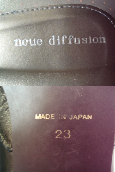 【ブランド・形態】 neue diffusion ノイエ ディフュージョン フラットヒールストラップパンプス 2785BZ 23.0cmです。 参考サイト 【カラー】 ブロンズです。 掲載の実物写真はPC環境や光の加減により実物と色合いが若干異なる場合があります。 【特徴】 ノイエ ディフュージョン neue diffusion フラットヒールストラップパンプス 。 ギャザーを寄せたつま先周りのデザインがお洒落な一足です。 アンクルストラップが足元を華奢な印象に。 ストラップはフック式で脱ぎ履きがスムーズにおこなえます。 ヒール高:2cm、トゥタイプ: スクエア、クロージング: フック 【状態】 アッパーはあまり使用感が無く目立つようなシミ・ヨゴレなどはないです。 ソールは多少の使用感はあると思いますが、まだまだ問題なくご愛用いただける状態かと思います。 箱・はありません。 【素材】 表素材:本革 裏素材: 合成皮革 中敷素材: 合成皮革 ソール素材: 合成 【サイズ】 23.0cm 靴幅: 2E(普通) 質量:325g | |||