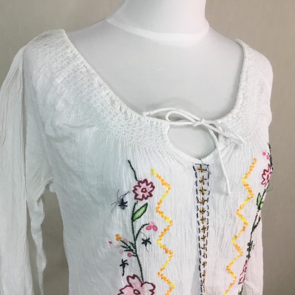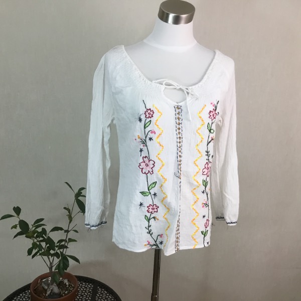 商品タイトル:M588□エスニック調 民族系デザイン 花柄刺繍 長袖チュニック XS