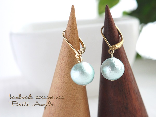 ◇◇+angelo+コットンパールのフレンチフックピアス(p-404)アクア G 10mm シンプル 一粒 大人 水色