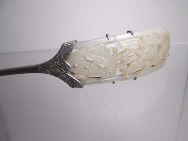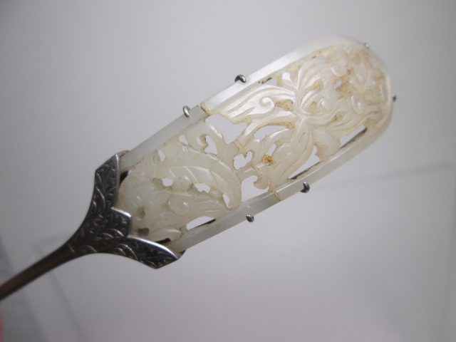【江月】アンティーク・白砡 葉っぱ透かし紋様のかんざし 9,77g