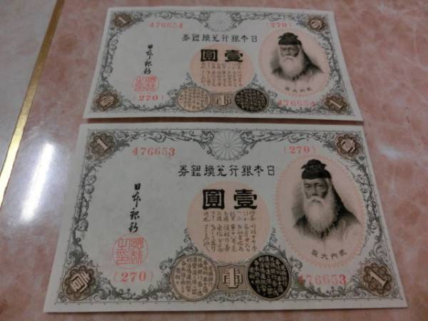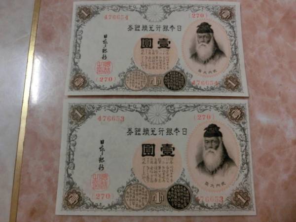 大正兌換銀行券1円 アラビア数字1円の200番台の極上美品を連番で2枚セットです。