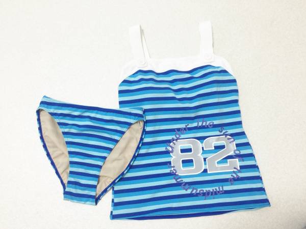 ●水着 7S●ヤマトヤ◆ブルー系ボーダー*タンキニ水着/82