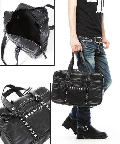 大ぶりのピラミッドスタッズを打ち込んだバッグ。