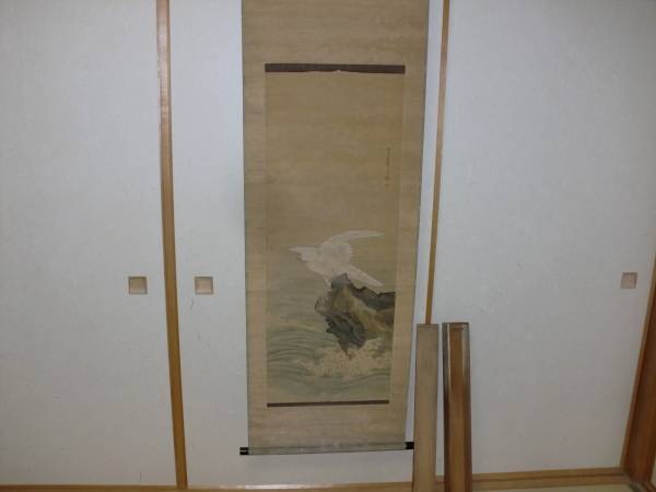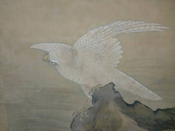 【模写】 掛軸 古画 開運 トテモ雰囲気のある白鷹圖 在銘 絹本 木箱