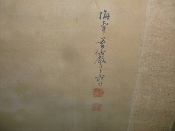状態は、画像どおりですが、非常に古ーい作品にて 表装に時代薄汚れ等あり、本紙にも時代薄汚れ等あるもトテモ雰囲気のあるアンテイークコンデイションです。