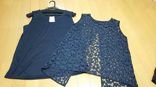 サイズ9/レースプルオーバー:バスト87・着丈65・肩幅34・タンクトップ:バスト89・着丈62・肩幅33 cm