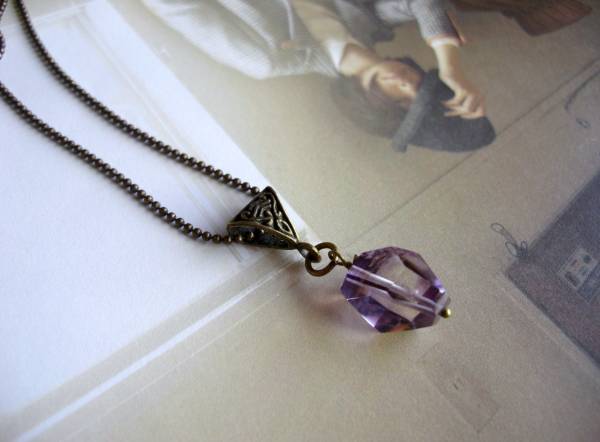 シベールの宝石箱・・シリーズです♪神秘的なアメジストのネックレスです♪透明度の高いラフ・カットのアメジストは可 憐な表情と存在感を併せ持つ魅力があります♪ネックレスは15×13ミリ位のラフカットのアメジストに繊細なボールチェーンや座金を合わせました♪長さは 70センチ+アジャスター7センチで最長77センチ位です♪トップは4センチ位です♪お揃いのブレスレットやピアスも出品しています♪シンプ ルで飽きのこないいつまでも着けられるデザインを考えて作りました!ハンドメイドをご理解頂いてノークレーム、ノーリターンでお願いします