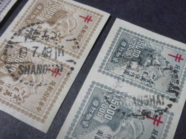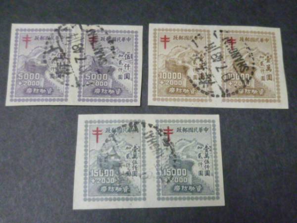 ▽№77 旧中国切手 1948年 資助防癆附損票 3完 無目打ペア